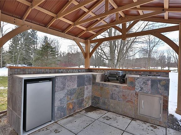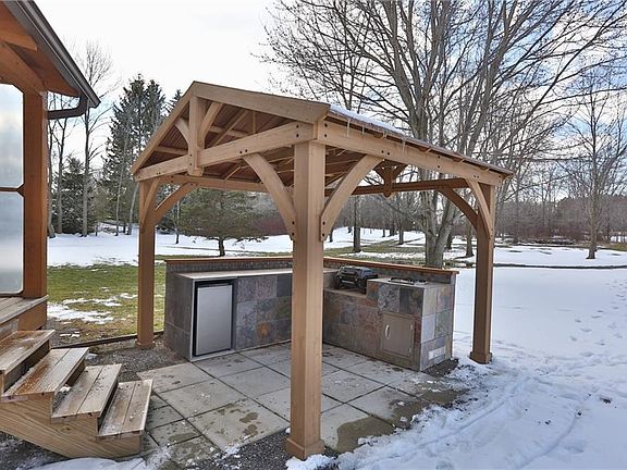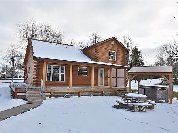 Cozy country log home with large yard all around. Hobbyist's dream workshop in 28'X32' garage plus drive-thru addition for mowing and other equipment. First floor bedroom option with on-suite bath. Roomy loft can be TV room or guest room. Full finished basement has large room with lam. wood floor, plus second room and a separate large laundry room. Second floor large bedroom has it's own powder room. Entire home well maintained and up-to-date. New outdoor kitchen perfect for summer entertaining.