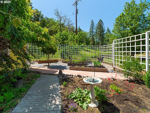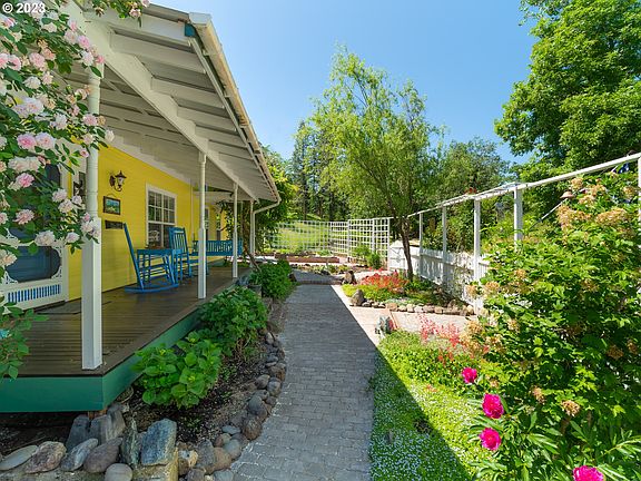 Experience the epitome of country living in this picturesque and charming farmhouse, nestled on just over 2 acres of breathtaking Southern Oregon property! Located on a private lane adjacent to a seasonal pond and a tranquil stream this property offers a beautiful setting. You'll be sure to enjoy the large wooden front porch, surrounded by mature landscaping, raised garden beds, inviting paver pathways, and a pristine white picket fence. You'll love the delightful shed that offers endless possibilities. Whether you envision it as a charming chicken coop, hobby room, or functional workshop, this versatile space is sure to inspire your creativity. Additionally, a spacious barn awaits, ready to accommodate your livestock or store your essential yard tools. Step inside this intriguing home, and you'll find yourself immersed in a world of artistic wonder. Where a local artisan has adorned the walls with hand-painted murals, beginning with a captivating family tree that graces the living room's prominent wall filled with windows and natural light. Pushing open the trunk of this tree reveals a secret small play area! This unique home continues to surprise and delight with its clever hidden doors, inviting crawl spaces, and a Narnia-inspired door that leads to two bedrooms boasting charming lofts. Upstairs, a living space resembling a cozy apartment awaits, complete with a faux brick electric fireplace and a breathtakingly painted tree that stretches majestically over the bed. Downstairs, you'll appreciate the window seat/library/closet area. Meanwhile, the dining room harbors a charming water heater/broom closet cleverly designed to resemble an old Irish phone box. This home is a truly one-of-a-kind gem that must be seen and experienced to be fully appreciated. Don't miss your chance to schedule a private tour and immerse yourself in the enchantment of this captivating property!