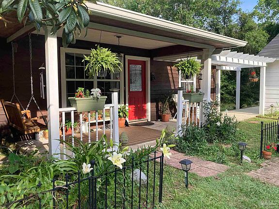 Almost 5 acres at this amazing MiniFarm ready for your entire family! This one of a kind property has room for everyone, 4 bedrooms each with a large closet and 2 baths. Living room and dining room have an open concept with lot of space in the Kitchen to socialize! So many cabinets! Special architectural accents include the fleur de lis glass front door, pineapple doorbell and custom pass-through half wall in the living room! Need quiet time? You will love the Master Bed room with it's huge closets, french doors to the back patio & portable hot tub, and huge master bath with shower and garden tub! Bonus room not included in square footage used as tool room/storage. It includes many fruit trees in the orchard, including but not limited to fig, pears, apples, blueberries, passion fruit, loquate, orange, lemon, persimmons, mulberry, accia. There are raspberries, grapes, elderberries. There is a seasonal pond that has recently been sealed with bentonite clay. There are a few old bee hives with one actively producing honey! Lots of wild life including deer, rabbits and birds. As if this wasn't enough, there is a large metal barn with bays and electricity for your mower storage or livestock and a tough shed. RV space! Fenced in Garden area with great soil. Enjoy the large back patio, the front covered porch or time under the pergola with a cool drink. Beautiful landscaping with lots of flowering trees, perennial bulbs and enough other plants to split and share each year! Low maintenance will include no worries with a New roof in 2021, real wood cedar siding, No HOAs, New oversized double garage built in 2022, Zoned to allow Horses or other livestock. Also Zoned to allow an Auxiliary Home to be added to property. Termite and Pest treatment & contract renewed May of this year. Septic system for low monthly expenses. The best local school district includes Tate High School. Realtor Owned.