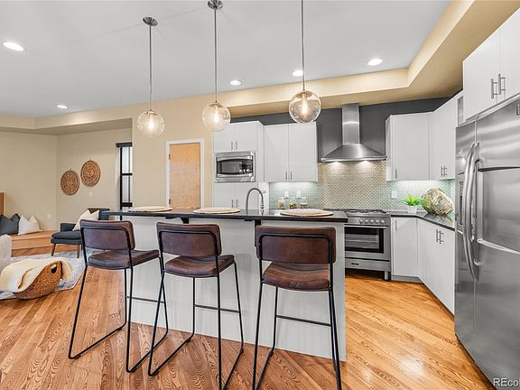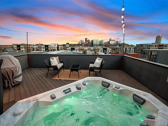 Discover LoHi living at its finest in the heart of one of Denver’s most vibrant and sought-after neighborhoods. This stunning end-unit townhouse is walkable to some of the city’s best attractions including Michelin-Starred restaurants, Coors Field, Ball Arena and more. Enjoy breathtaking unobstructed views of downtown from the expansive private roof deck, complete with a hot tub and custom-build bar– ideal for entertaining. Step into the main living area and experience a bright, open-concept space anchored by an integrated gas fireplace. The stylish chef’s kitchen features updated cabinets, a five-burner gas range, and a balcony ideally suited for al fresco meals. A versatile bedroom seamlessly transforms into a home office with a custom Murphy bed and desk. Upstairs, an extra large primary suite is a serene retreat, offering ample space, privacy, and comfort. A third bedroom with an ensuite and separate laundry closet completes the upstairs floor. The attached garage comfortably fits two full-sized SUVs, comes with an EV charger, and still has additional space for your home gym or storage. Organization is effortless with three large closets in the front entry and garage spaces. The property has no HOA, and $92 monthly dues cover water, landscaping, and snow removal. Enjoy this perfectly situated, thoughtfully designed, and immaculately maintained home.