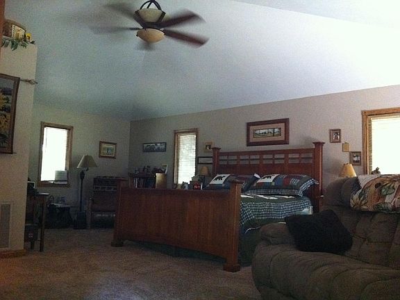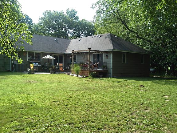 Peaceful country living on this beautifully landscaped 6 acre estate. The concrete driveway leads to this 3200 square foot, 4 bedroom, 3 bath home nestled among mature pecan and oak trees. The open floor plan includes an 800 square foot Master Bedroom suite containing walk-in shower, Jacuzzi, walk-in closet and utility room. Kitchen and living area has handcrafted quarter-sawn oak cabinets with many glide out pantries and drawers, along with custom oak passage doors and moldings. Solid oak flooring throughout the living room, dining room and entry. Tiled floors in kitchen, bathrooms and basement. Basement serves as an 800 square foot entertainment area with wood burning fireplace and auxiliary dining. Dual HVAC units with HEPA filters, R-38 insulation, and Anderson windows and patio doors installed in 2008 create an energy efficient environment. A two stall garage, redwood deck off of master bedroom, over 600 square foot of floored attic, 2 water wells on property and rural water service round out this smoke-free, pet-free home.