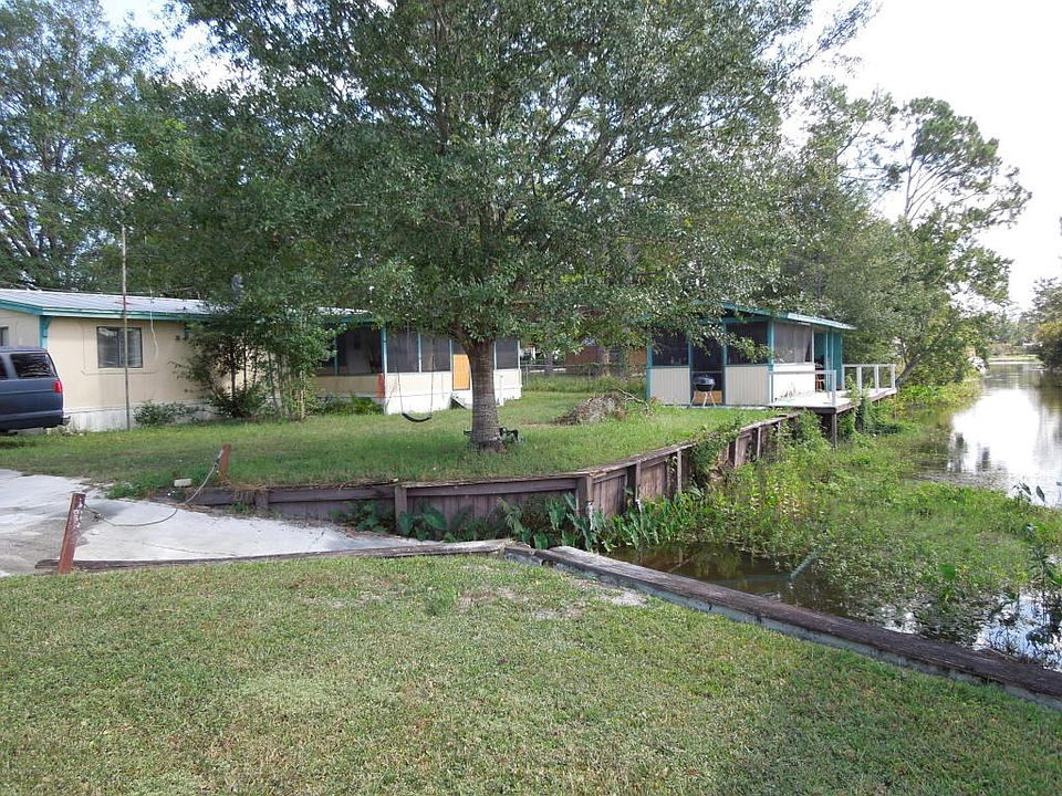 3/2 double wide with screened porch addition. Metal roof, fireplace, laundry area, and storage area. Two nice lots on canal that leads to Lake Delancy. Has its own boat ramp, bulk head and screened room at waters edge. Price reflects home and improvements needing TLC. Lake Delancy is totally surrounded by the National forest.