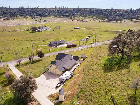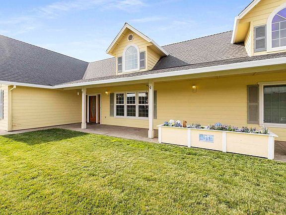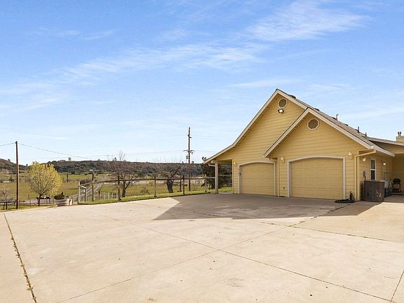 COUNTRY HOME in the Rawhide Valley, better known as the "Yellow Farmhouse." This charming home sits on 1 fenced acre with undisturbed views to Table Mountain and Rawhide Valley. Generous parking onsite in addition to the 2 car finished garage with room for RV PARKING offering full hookups. A quaint covered porch with raised flower beds provides an inviting entry. A durable and low maintenance interior boasts stamped concrete flooring as well as engineered hardwood. The living room is enhanced with tongue and groove ceilings, a rock wall fireplace and accent ceiling lights. A home designed to entertain, the kitchen is spacious and open offering a breakfast bar, propane range, built-in stainless steel appliances and a breakfast nook off the side. The formal dining room is perfectly placed to capture the best views and natural lighting through the dormer windows. Just off the kitchen is the laundry room with a full sink and ample space for additional shelving. Keep your home organized as you slip in from the garage into the mud room where you can slip off your shoes and hang your coat. The master suite is complete with a walk-in closet, private outdoor access and both a soaking tub and stall shower. Guest rooms and a full bathroom are around the corner giving additional privacy to the master suite. No need to worry about storage here, the hallway provides 2 storage closets in addition to a coat closet at the entry. Outside you can decide between relaxing under the gazebo or lounging under the covered porch. The grounds are easily maintained with zoned sprinklers, riding lawnmower ready (No Rocks!), and concrete walkways all around. Take the 3D tour for a virtual experience!