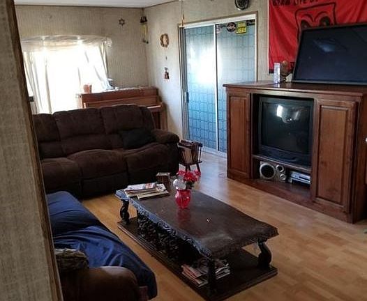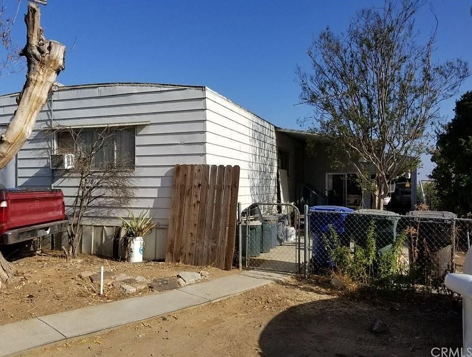 GREAT LOCATION! Don't miss this opportunity to own this mobile home (on its own land!) that has a spacious layout, two bedroom, two bathroom on over a quarter acre lot with a addition fully enclosed sunroom which could be used as another room or rental space. The master bathroom has dual vanity sinks, and a great mountain view from the rear wood deck. Fruit trees and two sheds are also on the property. Just 3 blocks from Martin Luther King High School and a short drive to nearby shopping centers, movie theater, restaurants and the 215 freeway. This home is located on a dead end street so traffic is minimal. Awesome location, great potential and price IN RIVERSIDE! Don't let this one pass you by!