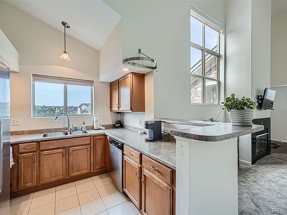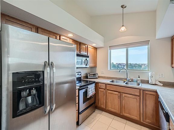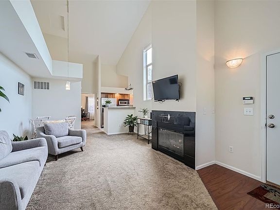 Move in ready, immaculate condition in amazing location! Top floor unit with vaulted ceilings, lots of natural light, and gas fireplace in living room for those cool winter nights that are coming. A remote window shade was added in the living room to help balance the natural sunlight with ease & efficiency. Kitchen and laundry room are spacious with lots of cabinet space. Personal space is created by a floor plan that places a bedroom on each side of the living space. The primary bedroom and full bath on one side and the second bedroom shares its full bath with guests. Newer carpet and paint. Mature foliage creates privacy for grilling on your covered porch. Private pool & clubhouse are steps away from your front door. Easy access for commuting, shopping, & entertainment. Southlands shopping mall, Aurora Town Center, Cherry Creek State Park, Aurora & Quincy reservoir, E-470, I-225, Buckley AFB are all within a 10-15 minute drive. Entry to the complex off Sterling Hills Parkway takes you directly to the condo with one car attached garage without going through the neighborhood.