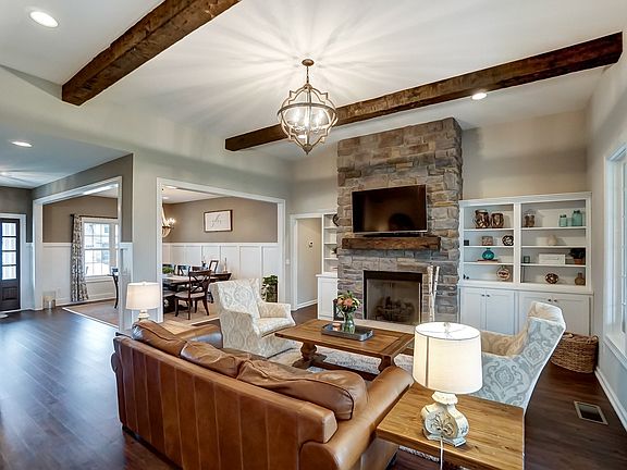 Stunning two year old property in Deer Hollow! This 2 story home offers 4BR/3.5BA with a daylight lower level and sits on a large lot which is fully fenced. The inviting front porch is covered and allows you to sit out and enjoy the morning sunrise. Enter in through the front door and be captivated by the large open space with all of the modern finishes. The living room has a beautiful stone fireplace, a beamed ceiling, and a great lighting fixture giving this space a nice rustic look. It is centered around and open to both the formal dining room to the side of the entrance and the kitchen making it perfect for entertaining! The island kitchen has custom cabinets and quartz countertops along with a sleek tile backsplash. There is a corner pantry for additional storage and has a small breakfast nook off to the side. There is an abundance of natural light that pours through all of the many windows stretching from the dining room around to the kitchen. The master is conveniently located on the main floor and boasts an elegant ensuite bath with master walk-in closet. The bathroom has a double sink vanity, an amazing garden tub for rest and relaxation, and a separate open walk-in shower with a pebble floor and stone tile bench. A utility room with laundry and a half bath finish out the main floor. Upstairs lies two more large bedrooms with a full bath and a gigantic bonus room that can be used as an upstairs family room, playroom! Head down to the lower level and turn this space into a game room, media room, and more. There is a perfect space for a gym downstairs and it is plumed for a wet bar! The 4th bedroom is located in the lower level along with another full bath. Travel out back off of the kitchen and enjoy scenic views of the surrounding area. The back patio is covered and is a great space for outdoor entertaining and cookouts. This home has a side loading attached garage with plenty of additional storage space. This home is generator ready, has a dual zone heating system, and comes with a 10 year structural warranty. Located just inside of the Leo school district and just a short drive into the heart of the north side of Fort Wayne, this new home is the perfect spot for your new family. Stop in and make it yours today!