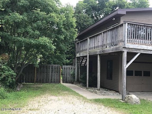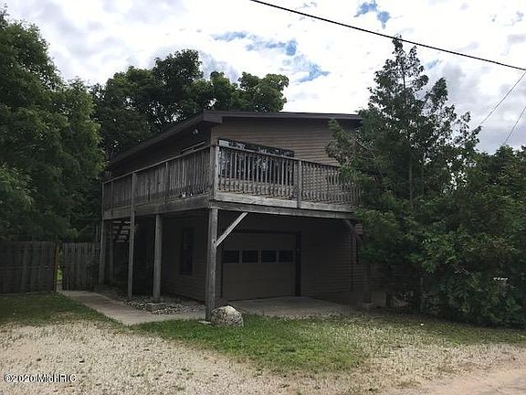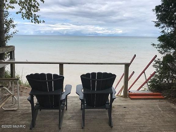 Beautiful Lake Michigan views with deeded Lake Michigan low bluff access just feet from the home. Lake Michigan sunsets off the large deck and from the large windows. This 2 - 3 bedroom home has two full baths, remodeled kitchen, large living room with a wood burning stove. Main level laundry and wrap around deck. Second living room could easily be converted to a large third bedroom. Just minutes from Arcadia Bluffs and Crystal Mountain. Great location on a quiet dead end road. Large fenced back yard. Sit on the deck and hear the waves. A little updating and this will make a great summer cottage or year round home. Lake Michigan views and access without the price tag.