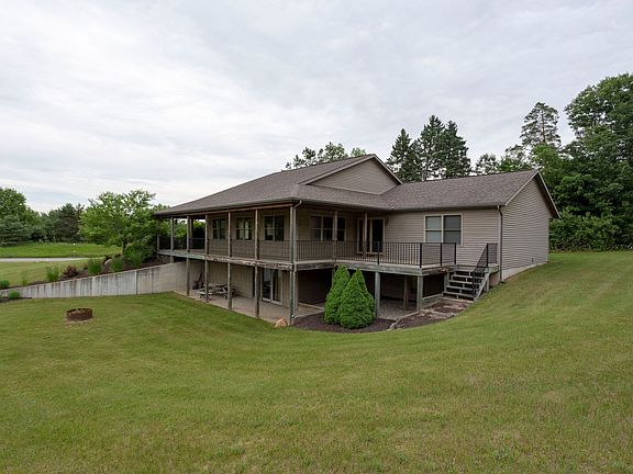 Sitting on 1.38 acres and boasting 5 bedrooms, 3.5 baths, a custom kitchen, and custom woodwork throughout, you don't want to miss this beautiful custom home! Step outside to feel the outdoors as you walk down the wrap around porch and survey the wildlife in your yard, or step into the basement and feel like you brought the wildlife inside with you as you sit by a warm fireplace surrounded by large pine logs. You wont want to miss your chance to see this once in a lifetime home, all 45 minutes from Grand Rapids, the Lakeshore, and Traverse City, you are in the middle of it all!