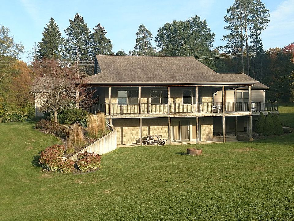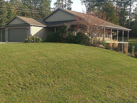 Step inside this beautiful custom home with 5 bedrooms, 3.5 bathrooms with a fully finished walk out. A gorgeous wraparound porch surrounds this home and overlooks the rolling hills around the home. Large kitchen with custom cabinets with plenty of storage and an open view to living and dining rooms. Master suite features a large walk in closet and a large bath equipped with two sinks. Fully finished walkout basement with a cozy stone gas log fireplace, and a storage room with built in shelves and a 3 car garage. This is a home you won't want to miss! Contact Jim Cook at (231) 660-4370 for more information.