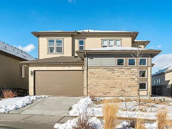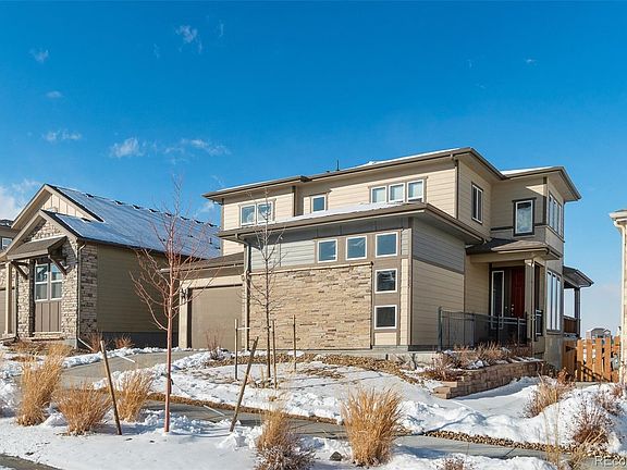 Located in the beautiful Candelas neighborhood. This 4 bedroom, 4 bathroom home features a dramatic 2 story foyer with over sized windows. On the main level you will find a guest bedroom with a private full bathroom, an office/flex space, and a large great room with a fireplace that opens up to a dining room and gourmet kitchen complete with oversized island, gas stove, and double oven. On the upper level the master bedroom features dual sinks, large shower, and massive walk-in closet, as well as 2 additional bedrooms with a Jack & Jill bathroom, upstairs laundry room with sink, and a loft that overlooks the foyer. The walk-out basement is ready to be finished just the way you like with added living space, or could be a great additional dwelling unit. Candelas offers the best of Colorado living with 6 parks, 13.5 miles of trails, two swim and fitness clubs and on site K-8 school. Schedule your showing today!