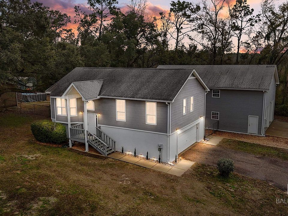 Embrace the essence of Southern living in South Foley, where comfort & convenience meet the freedom of no HOA! On just under half an acre off of County Road 12, this charming two-story, four-bedroom, three-bathroom home offers the perfect blend of space, privacy, and opportunity. Step inside the main level to be welcomed by a warm and inviting living space. The main level welcomes you with a functional floor plan, perfect for intimate gatherings or quiet evenings at home. Here, you'll find the kitchen with beautiful custom cabinetry, a cozy living room, and three bedrooms. Tucked away on the ground floor is a two car garage, the utility room, and the fourth secluded bedroom with its own ensuite bathroom, offering privacy and comfort for guests or family members seeking solitude. For those with hobbies or DIY projects, the detached 30x50 workshop workshop with a 30x24 bonus flex space awaits your creative touch. Whether you're an automotive enthusiast, a woodworker, or simply looking for extra storage space, the versatile addition has you covered. The property offers plenty of opportunities for outdoor enjoyment. A manageable outdoor area allows for low-maintenance landscaping or the creation of a patio oasis, perfect for enjoying a morning coffee or evening sunset. Convenience really reigns supreme with this great location. Just a short drive from the sun-kissed beaches of Gulf Shores and minutes away from OWA, the beach express, and the Tanger Outlets, you'll enjoy easy access to shopping, dining, entertainment, and more!