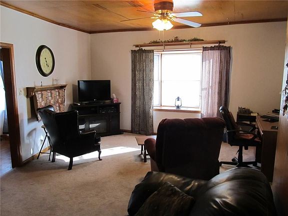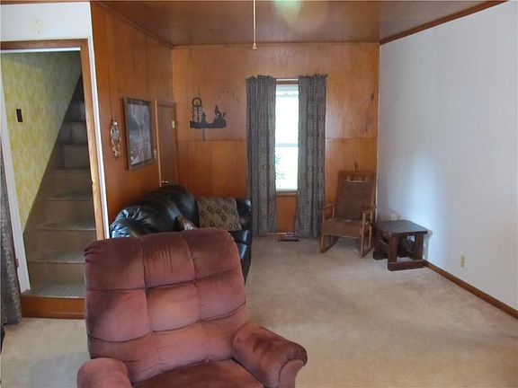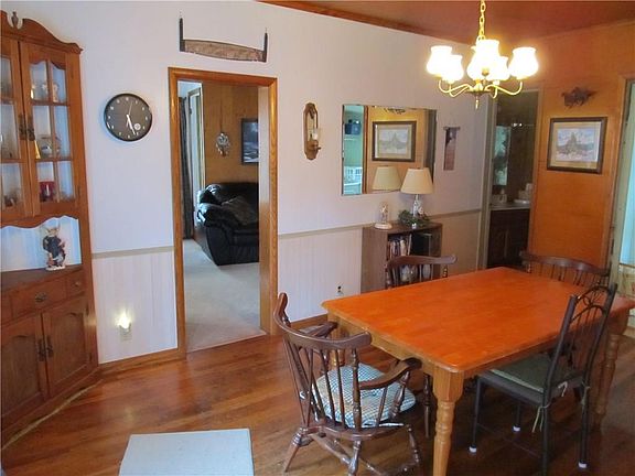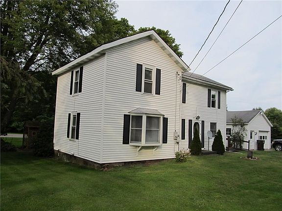 2 story Colonial style home with large yard. Roomy bedrooms on 2nd floor. Read your favorite book in sitting room or make it your own office space. New laminate floor and tiled shower in bath. Hardwood floors in dining room. Two stairways to 2nd floor. Walk-out basement for additional storage. Rear covered porch. One car detached garage with storage. Updated furnace, bath, doors other updates through out the home. Land across highway included in the 1.47 acres.