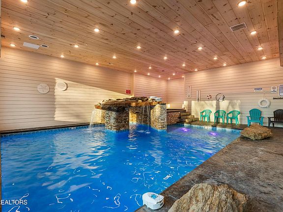 This cabin has already earned $50,000 in just a little over 2 months of active rentals! This mountain retreat is tucked away in complete seclusion, yet just minutes from Dollywood. Fully furnished and certified for 25 guests, this 5-bedroom, 5-bath haven features soaring ceilings, walls of glass, and private balconies offering nothing but breathtaking views of untouched wilderness. The showstopper? One of the largest indoor pools in the Smokies, featuring a massive rock waterfall The open floor plan makes entertaining effortless, with a gourmet kitchen equipped with premium appliances, granite countertops, and a pass-through bar to the outdoor dining deck. Step outside to explore or relax on cantilevered decks that blend seamlessly with the landscape. Whether you're creating memories with family or adding a top-tier property to your portfolio, this lodge delivers on every level. It's more than a getaway—it's an experience.