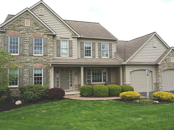 2 story colonial with contemporary flair. Situated on a cul-de-sac minutes to all of your conveniences and the new UPMC Hospital. Exterior features a paver walkway leading to covered front porch with recessed lighting, and large rear deck. Don't forget the 4 car tandem garage! LVT throughout the entire first floor. Updated kitchen with modern dark cabinets, beautiful quartz counter tops, and black stainless top of line appliances . Large island/bar to seat 3-4. Stone gas fireplace, formal dining room with large windows, chair rail, shadow boxes and crown molding., formal living room, and updated 1/2 bath. Entertainers paradise full finished walk out basement with quartz bar, recessed lighting, large 1/2 bath, and theatre room. Upstairs features separate laundry room, & 4 nice sized bedrooms. Primary bedroom with vaulted ceilings, ceiling fan, large walk in closet. Primary bath with jacuzzi tub, shower stall and double sinks. 2nd full bath updated with heated tile floors, and tiled shower stall and quartz counter tops. Home is updated throughout. You will not be disappointed in this beauty!