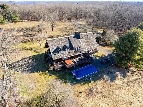 Year-round activities at this 4 bedroom 5,100 SQ FT Swiss Chalet w 220v Tesla charger, 16 acres in Litchfield Hills with breathtaking sunsets, horses. 4-bedroom property. The Chalet features : Three fireplaces, European carpentry, a master bedroom suite for Royalty, wraparound deck, 16' x 32' pool, outdoor jacuzzi, chef kitchen, dining room for 12, cathedral ceiling living room, full game room w/5' x 9' Brunswick antique pool table and workout area with sauna and Sonos throughout the Chalet. This is a month to month rental-all utilities, weekly maid service and gardening services are included. No smoking, plenty of parking, privacy and pets are allowed.