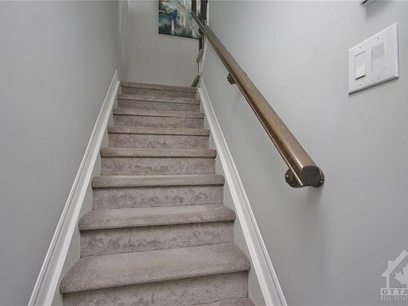 Welcome to this beautiful 3 story end unit townhome in desirable Stittsville! Steps up from the inviting foyer await a spacious second level with dark hardwood floors & large windows with lots of natural light. Living room, dining room & kitchen with eat-in space, white cabinetry, granite counters, stainless steel appliances & breakfast bar. The top floor hosts two bedrooms, including a principal retreat with a generous walk-in closet, and a full ensuite bathroom. Walkable neighborhood close to parks, public transit, shops, outlet mall, biking trails, Canadian Tire Centre Place, Bell Sensplex, restaurants and so much more. Easy access to 417 & quick commute to the city. Roomy garage, plus 2 parking spots in the laneway. This home is move-in ready, come take a tour today!