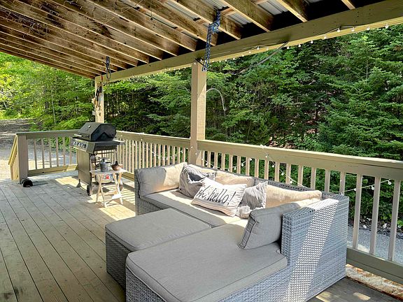 Get away from it all out in Deep Sheffield Vermont. This off grid cabin is located on a publicly maintained road on 29.7 acres. Approach the camp via a gated drive and you arrive at the cutest cabin set up high with a wrap -around southern facing deck and covered porch. A perfect spot for evening drinks, cookouts and games. The camp offers all the comforts of home with a Generac generator, drilled well and septic tank. In addition to an open floor plan with cathedral ceiling there is a first floor bedroom and a large 13 x 13 loft for the log king sized bed that is included. The centerpiece of the living space is the propane stove flanked by stone hearth. The view from your deck overlooks a firepit area, grassy open field and your brand new 40 x 48 barn with overhang. The barn was built by the seller in 2022 and has room for all the toys you bring to this property. There are abundant trails on the property for ATVs and VASA access down the road. VAST is on the property and the trail from the barn heads directly there bring your sleds! The property has abundant water with Nations Brook and backs up to a pond. There are ample spots for tenting and camping on the property for all your friends and family. This is a recreation paradise. The sellers are offering the property fully furnished as-is.