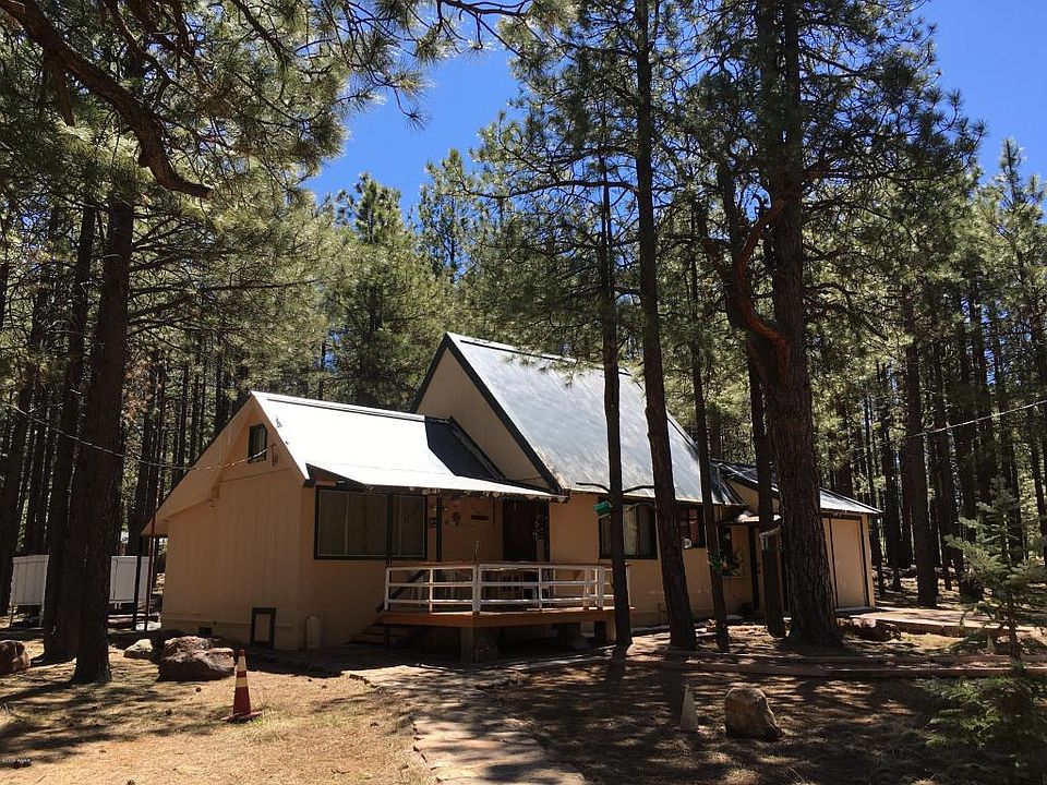 Trustee Sale: Below Recent Appraisal! 1 Bedroom, loft, with another potential bedroom. Garage & lots of Out buildings. Large BBQ area, Horse shoes, Volleyball, fishing, off roading. Lots of Tall pines on a cul-de-sac lot.Fun Summer retreat in the Cool White Mountains!Buyer to Verify Square footage.