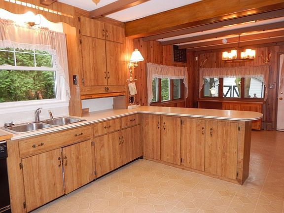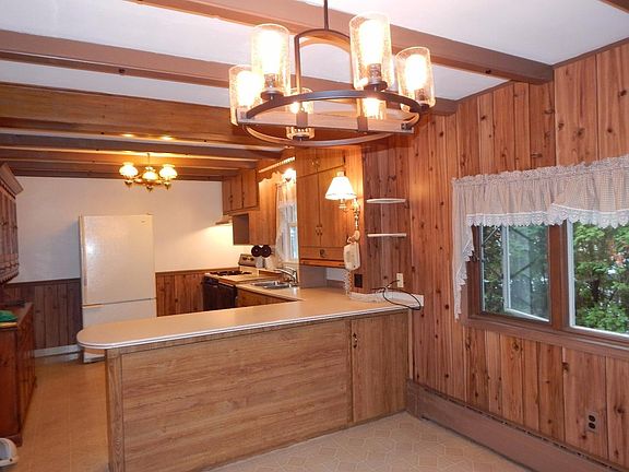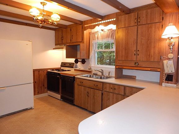 Extended Cape in Hamilton surrounded by trees and shrubs, 3 bedrooms and 2 full baths. The living room entrance welcomes you to stay. Relax in the large family room with brick gas fireplace. The kitchen and dining room come fully equipped with a warm oak finish giving it a country feel. The sun porch has multiple sliding glass doors to allow for the summer breeze. The deck wraps the porch giving the opportunity to entertain guest and cook on the grill. Backyard includes two sheds. Vinyl Replacement Windows. Plenty of parking in the driveway and detached garage.