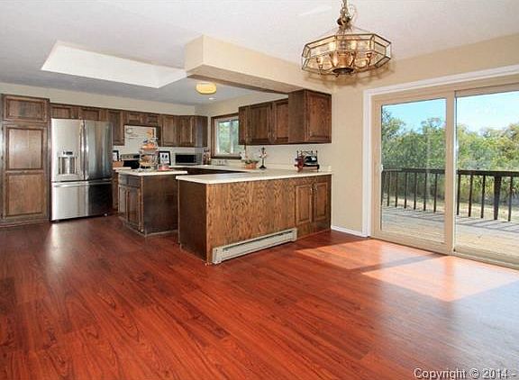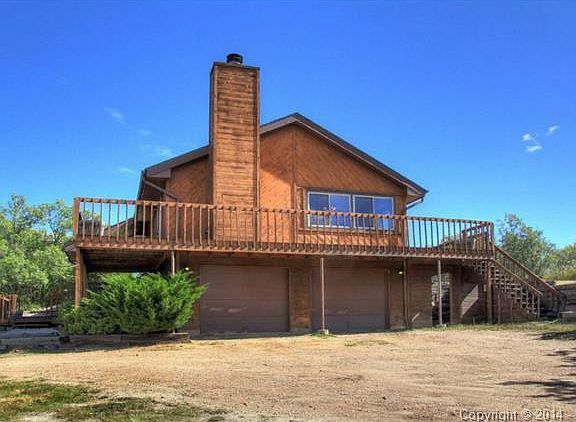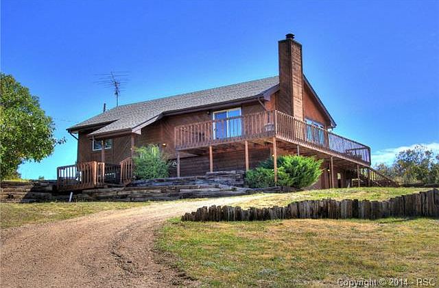 Perfect home in the country yet close to town! Easy access to I-25. Spectacular views of mountains from wrap-around deck. NEW doors, NEW interior paint, NEW skylights, NEW vinyl windows, NEW carpet, NEWER floors, large 1 acre private lot. Additional structure w/ electrical could be billiard room, workshop, man cave or storage , kitchen has an island, pantry, stainless apps & large skylight, wood fireplace in the living room,washer & dryer stay. This is a great house in a great neighborhood.