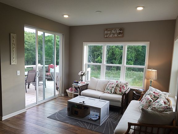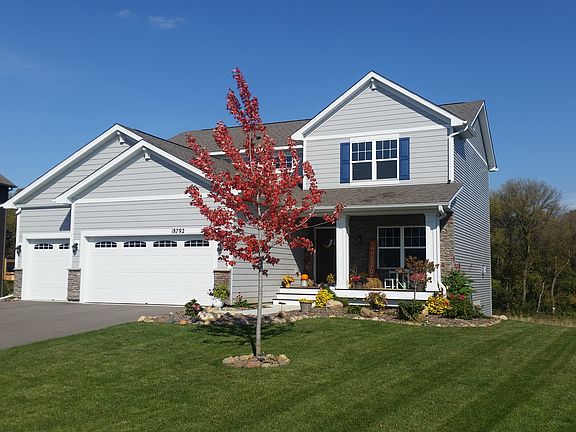If interested in more information or to set up a showing of this home please call the seller at 612-226-3019. ---- This is a beautiful and unique home for its development. This home was built in 2015 on a premium-offered 0.28 acre lot backing up to a protected city wildlife outlot and 40 acres of heavily wooded land, giving incredible views from the back of the house and deck. The home was built with a custom sunroom addition off the main floor as well as extra space below to add to the walkout basement. You will not find a more open floor plan for a main floor in this development with its rustic wood-look floors throughout the main level and views to the wildlife out the back. Kitchen has stunning white finishes, a double-oven, and a custom walnut butcher block mobile island that has locking wheels which provides options and ease in entertaining any number of guests. Main floor also has a 143 s/f flex room, perfect for an office, playroom or reading space. A gorgeous 180 s/f deck was built in 2017 overlooking the woods and private backyard with a fenced garden and swingset. Other aftermarket additions include a custom mudroom bench and cubbies as well as shelving in the large 3 car garage. The 2nd floor of the house has a large master bedroom with cathedral-vaulted ceilings, a walk-in closet. and master bath with double vanity, glass shower and separate soaking tub. Three other bedrooms on this level share another full bath with double vanity sinks. An upper-level generous laundry room with washtub is another plus to this house. The basement is 1,415 square feet ready for your imagination or for young children to enjoy. Homeowner has walled in mechanicals and utilities in basement to keep youngsters out. Speaking of youngsters, this home is walking distance to two separate playgrounds, Lifetime Fitness and pool and in a neighborhood with several children and young families. The attendance zones are in Lakeville School District with Cherry View Elementary, Century Middle, and Lakeville North as its neighborhood schools. This home still has 7 of the original 10 years left on the new home warranty that is completely transferable to the next owner. Don't wait any longer to build and allow interest rates to continue to climb. This beautiful home is available for you now!