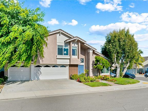 Attractive & Bright Summerfield Home with 3 car garage on corner lot tucked back in quiet cul de sac in 68 home tract steps to the neighborhood park! Great open floorplan, central air conditioner, concrete tile roof, textured ceilings & dual pane windows thruout! Huge primary suite upstairs with high ceilings & a walk-in closet & an extra long mirrored closet plus en suite bath with double sinks & custom tiled shower/soaking tub w/bench & decorative engraved shower door. 3 additional spacious bedrooms upstairs plus full hall bath with shower/tub. Spacious living room with high ceilings & corner windows for extra light opens to formal step up dining room, remodeled kithen features granite counter tops & upgraded cabinets, stainless steel applicances, decorative backsplash, bay window for additional countertop, ceramic tile floor & recessed lighting opens to breakfast room with pantry & built-in desk plus slider out to back shaded patio. Family Room has floor to ceiling white brick fireplace & wetbar & slider that leads to lovely private landscaped yard ideal for entertaining!Inside laundry room plus guest bath with chandelier. Finished 3 car garage with the 3rd garage space enclosed so could be an office, gym or hobby room. Oversize back patio with shaded cover with area on side of house for garden or dog run, additional concrete area behind 3rd car garage. wonderful neighborhood park, excellent schools & short drive to the beach & freeway, walk to restaurants & shopping!