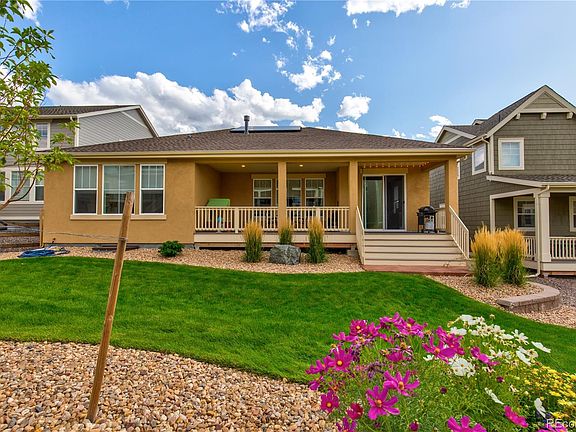 Welcome home to this immaculately maintained Ranch Style home in the desirable Leyden Rock Neighborhood! Conveniently located for a quick weekend getaway to the mountains or a fun night in downtown Denver. This home boasts multiple upgrades throughout such as granite countertops, extended cabinetry in the kitchen and bathrooms, 9 foot ceilings with 8 foot doors, top of the line flooring, solar energy and Smart Lock keyless entry on the front door. Professionally landscaped yard with sprinkler system. Huge 3 car garage great for a shop or toys. The basement is unfinished but has incredible potential for your future plans with rough in plumbing present. Mountain views from both the front and the back porches make this home your very own tranquil oasis. A family park as well as open space within walking distance makes this home a must see!