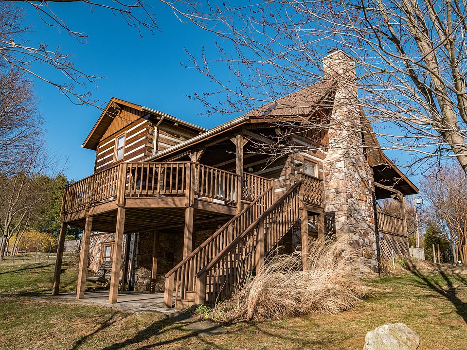 Unique Log Cabin with Hardwoods throughout the Main & Bedroom Levels, Exposed Beams, Skylights & Vaulted Ceilings, Floor to Ceiling Stone Fireplace with raised stone hearth, Large remodeled Eat-In Kitchen with large quartz top island, Main Level Bedroom & Full Bath, 2 Bedrooms Upstairs w/Full Bath, Walkout Basement with Rec Room w/Recessed lighting & Woodstove Hookup, Large Storage Room w/Full Window (Potential to add 4th Bedroom), Large Deck, Covered Porches & Paver Patio - Incredible Views, 3 Private Fenced Acres & More!