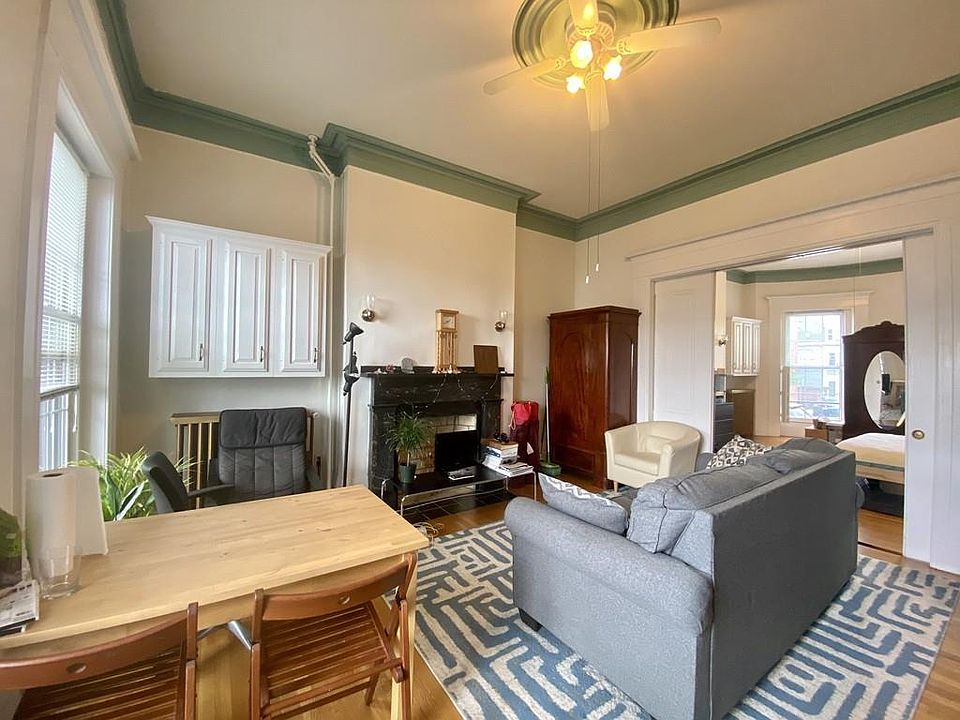 Charming parlor-level 1bd on the water-side of Webster St. in the heart of Jeffries Point. For those who appreciate classic architecture and detail this is the place for you. 14ft ceilings, 2 ornamental fireplaces and pocket doors that separate the living and bedroom areas. Enjoy views of historic Brophy Park out the over-sized front windows and step out on to your private rear deck to soak in the sunshine while watching the sailboats pass by on the Boston Harbor. Rent includes heat and water. Coin-op laundry and storage closet in basement. Steps to Award-wining Piers Park boasting incredible views of the Boston skyline, neighborhood eateries such as KO Pies, Cunard Tavern and The ReelHouse as well as many convenience stores and speciality shops. Only a 10 min walk from the Maverick Square T-stop. East Boston residents receive discounted toll. Available for July 15th-August 1st move-in. Video available upon request.