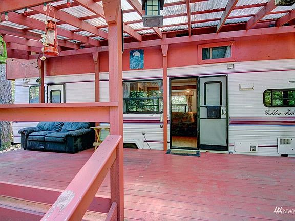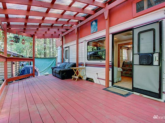 A perfect starter property in The Glen, this cozy home away from home has everything you need for a get away. Sit around the campfire or on the large covered deck to enjoy the weather. Utilize the shed for additional storage. Step into the trailer and relax in the various sitting areas or in the bedroom. Walk on over to the nearby Fireside Lodge and enjoy the pool! The Glen is zoned recreational for 120 days of use out of the year and has all the amenities you could want, including 2 pools, hot tub, tennis court, library, laundry mat, 2 clubhouses, 24 hr security, gated entry, & play areas.