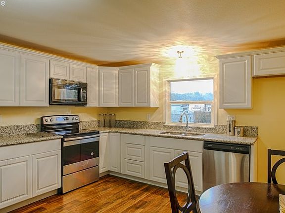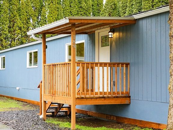 Completely rebuilt from top to bottom! New siding, electrical and panel, plumbing, waterlines inside & to the meter, waste lines, roof, interior walls, sheetrock, doors, trim, subfloor, windows & more. Feels & lives like a stick built. Open concept living area with den/3rd bedroom thru glass French doors. All new kitchen features granite counter tops & SS appliances. On nearly 1/3 acre corner lot w/seasonal creek, RV space w/full hookup