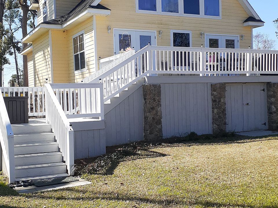 Your own peaceful retreat on the lake awaits you. Great vacation home getaway or permanent residence. Located on Lake Seminole. Beautiful Chalet with open floor plan. A nice ramp added to access main level for your convenience . Wood floors , open ceiling finished with wood. Custom cabinets in the kitchen. Tile floor and counters tops. The large master bedroom suite has a walkin closet and bath with jetted tub. The large loft opens to the living room and makes a great area for a family room ,and has a view of the water and grounds. Two bedrooms and full bath on main floor. Utility room , pantry and washer / dryer combo . Full unfinished basement area under the house great for storage . A 16×12 utility building makes a great work shop. Sit on your covered boat dock and enjoy the wild life . Dock has water and electric for your convenience. Located on the cul-de-sac in this quite neighborhood . Plenty of fishing in this lake that is famous for its Bass Tournaments. Call me for more information or your private showing. 912-816-6187 2% buyers fee paid by owner