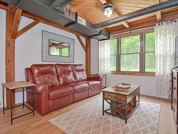 Welcome to your home nestled on a serene 4.98-acre parcel of land. This stunning post and beam property boasts 3 bedrooms and 1.5 baths. Step inside and be captivated by the warm and inviting atmosphere created by the beautiful exposed beams. The open concept design seamlessly integrates the living, dining, and kitchen areas making it perfect for relaxation and entertaining. The well appointed kitchen features updated appliances and granite countertops. Outside, the property truly shines with the 4.98 acres of land, providing ample space for outdoor activities or gardening. Additionally this property features a 25x40 detached garage, complete with a lift perfect for car enthusiasts or hobbyists. First showings start at the open house Saturday June 24th from 11 to 1pm.