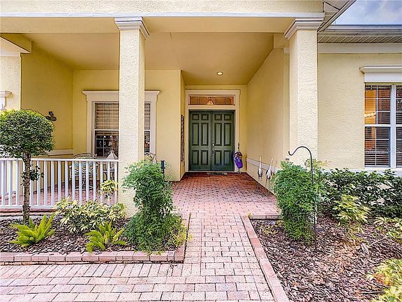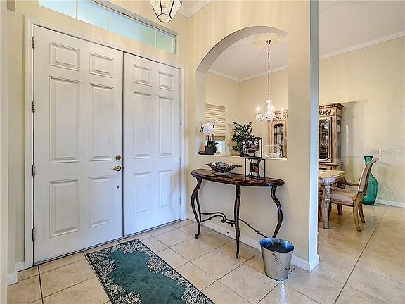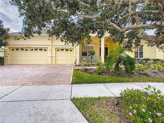 This rare Trilogy home has 2bedroom/2.5bath and an additional room that can be used as a bedroom or office is one to see. You are greeted by double entry doors into this grand home. The lofty ceilings are 11.4 inches tall and are adorned with crown moulding in the main living areas. The large master retreat is separated from the rest of the home and features and attached 5 piece master bath ensemble. There is plenty of space to entertain with a formal living room, formal dining room, breakfast nook and a counter area for bar stools. The kitchen has a new refrigerator and dishwasher. Opposite the main living area, you will find the other bedroom and office with a full bath in between. The rear lanai can be assessed through sliding glass doors from the formal living room or the family room. It beckons you to relax and enjoy the privacy provided by the green space behind the home. Once you move in you can start to utilize the impressive 57,000 sq foot clubhouse demonstration kitchen, golf simulator, card room, billiard room, and gym with state-of-the-art equipment. Outdoor activities indoor & outdoor hot tubs, pickle ball, tennis, bocce. Also classes including yoga, aerobics, Tai Chi, water aerobics. You can live here now in this Central Florida, resort-style oasis!