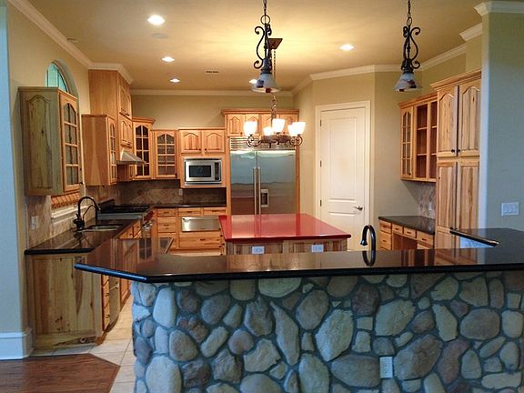 Custom built on 13.7 acres with pond. Massive island kitchen with quartz counter tops, stainless steel appliances, sub zero refrigerator. Huge living room with gas log fireplace and built in gun cabinet. Huge master suite with master bath to impress a king! Beautiful wood laminate and tile flooring, Safe room, 3 bay shop, emergency generator, bonus room, water treatment system, outdoor kitchen & more!
