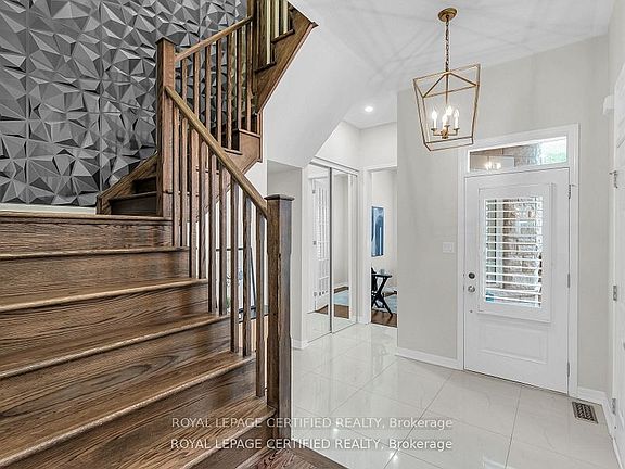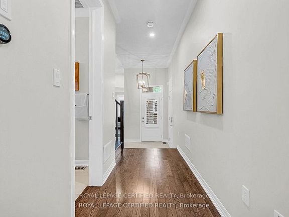 Stunning Luxury 4-Bedroom Townhome in Prime North Oakville! This move-in ready home offers 4 spacious bedrooms, 3.5 upgraded bathrooms, and a striking stone exterior. Inside, enjoy 9-ft ceilings, hardwood floors, pot lights, and modern fixtures throughout. The upgraded kitchen features granite countertops, a large island, and flows into a bright living room and breakfast area with views of the interlocked backyard. A seperate office/formal living space on the main floor adds flexibility. Upstairs boasts a laundry room and upgraded bathrooms with granite finishes. The finished absement includes a dry kitchen and bar-perfect for entertaining. Outside, enjoy a fully interlocked backyard with fence lighting, a gazebo, and an extended driveway. EV-ready garage, oak staircase, California shutters, and no carpet throughout. Steps from parks and top-rated DDW School, and close to all major amenities. Luxury, comfort, and location-all in one exceptional home.