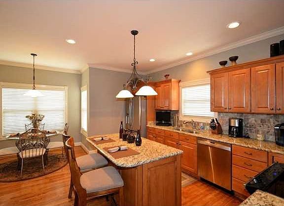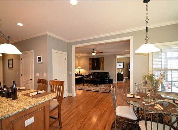 This custom built 4BR, plus office or study/4.5BA home has it all. Master on main plus 3BR's up and bonus room.Move in condition & looks new. Decorator colors, heavy moldings, volume ceilings, custom wood blinds, fin. bsmnt with media room/full bath & kitchenette. Hardwood floors throughout main lvl, large eat-in kitchen w/new granite counter tops, tumbled marble backsplash & new stainless appliances. Screened deck w/open area for grilling overlooks private backyard bordered by the neighborhood common area. This property will remain a natural area & will never be developed. A flowing stream runs through the middle of the common area & is visible from the deck. Walking trails wind throughout the natural area. The yard is professionally landscaped, including landscape lighting, flower bed borders & automatic sprinkler system. Also featured are central vacuum, large walk-in closets in all bedrooms, one piece covered gutter system & wired for surround sound. This one won't last, a must see