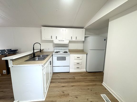 Are you looking for a new home in Gaston, SC? We have a freshly updated home for you located at Bismarck Mobile Home Park. 188-9 Bismarck Drive. 2 Bedrooms | 1.5 Bathrooms. This home has just been renovated. Freshly painted exterior with new stairs on both front and back. Inside features brand new LVP Flooring throughout and freshly painted. Large open living room. Kitchen has a new fridge, new stove, a peninsula for more space, and built in pantry shelving. Two spacious bedrooms with ample closet space, plenty of natural light, and overhead lighting. Hall bathroom has a brand new vanity, new toilet, and brand new tub/shower combo. Half bathroom located off of the living room for convenience. Central HVAC. Washer and dryer connections. Water, sewer, lawn care, and dumpster is provided for an additional flat monthly fee of $50.00. Reach out to schedule your viewing of this home today! No pets and no smoking inside please. Available Now! Bismarck Mobile Home Park is under new ownership and management so please excuse any mess you see while we are working to update the homes!