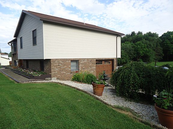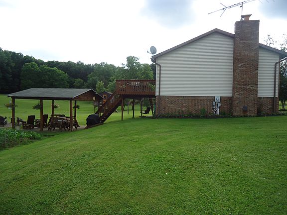 A well maintained split entry home on nearly 3 acres with some updates. Features 4 bedrooms, kitchen, dining room, living room, large family room, laundry room, large storage/utility room, and hot tub in a private room with a shower. Also has a 1 car attached and 2 car detached garage with fruit cellar and rear stoarge, child's playhouse, storage shed, and bricked in fire pit next to a pavillion. The owner receives free natural gas from a well on the property. Stove, refrigerator, freezer and dishwasher are being sold with the house.