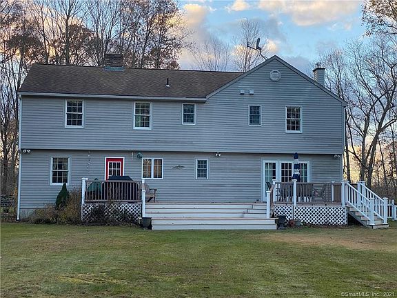 Plenty of space inside and out at this lovely COLONIAL home with over 2,400 square feet on a 3.47 acre lot! Set back from the road, youll enjoy the PRIVACY of the spacious, level back yard with an INGROUND POOL and room for your gardens.On the main level, French doors open up to the living room with WIDE PLANK wood floors. These floors continue into the dining room and are also underneath some of the carpeted areas throughout the house. The kitchen has an entrance to the back deck and leads to the family room and half bath. The WOODSTOVE in the first floor family room will keep you toasty warm throughout the cold winter. It also features French doors opening up to the LARGE BACK DECK where you can enjoy the serenity and the wildlife. Upstairs, two of the bedrooms feature PRIVATE BATHROOMS with the master suite adding a large WALK-IN CLOSET. There are two other good size bedrooms and another FULL BATH off the hallway. Rounding out the upstairs is a BONUS ROOM that is currently being used as an office but could easily become a 5TH BEDROOM.Additional features include CENTRAL AIR, a partially finished basement, 2-CAR ATTACHED GARAGE, a large outbuilding for extra storage or a workshop and maintenance free gutter system. New construction windows bring in plenty of light throughout the house. Convenient yet private location that is close proximity to the casinos, Electric Boat, Sub Base and more! Lower taxes in Preston. MOVE-IN ready home so book your showing today!