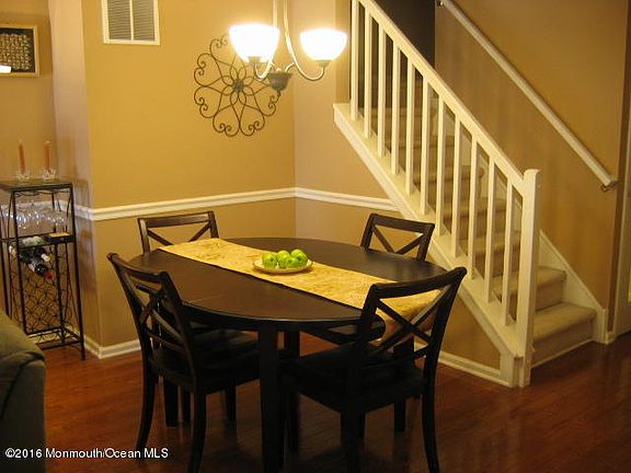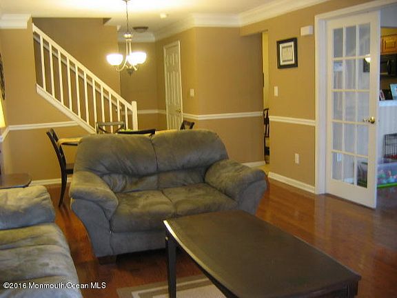 This wonderful Townhome offers hardwood in the living room, dining and den. Crown molding and chair rail throughout the great room. French doors open from the living room to the den. Convenient 1st floor powder room. Sliders lead out to the private patio. Upstairs there are two bedrooms and two full baths. The master has loads of closet space and its own bath. The huge 2nd bedroom has 2 closets and is filled with natural light. The 2nd floor laundry is a plus. All this atop a full basement. Finished half into living area and half into exceptional storage.