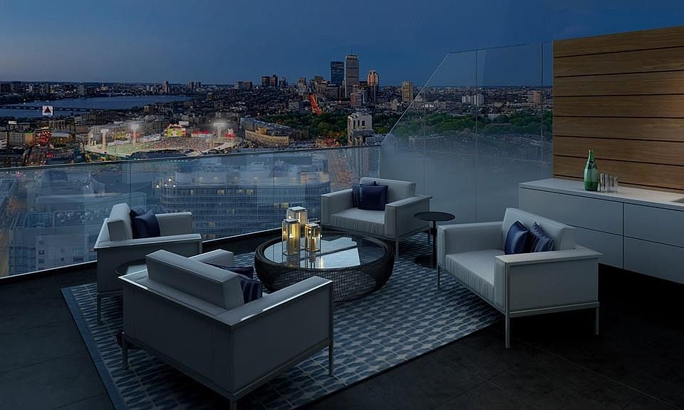 Pierce Boston features a distinctive blend of urban sophistication, local artistry and boutique excellence that truly celebrates the vibrant Fenway neighborhood. Sprawling southeastern panoramic views light up this spacious 1 bedroom apartment. This unit offers 10' ceilings, with floor to ceiling glass, peninsula style kitchen with island seating and quartz counter top, Sub-Zero and Wolf appliances, wide-plank oak floors throughout, spacious master with oversized walk-in closet, dual entry bath with glass shower, den space with sliding doors. Residents enjoy 20, 000 SF of amenity space with exclusive access to the rooftop Levity Lounge including a brilliant sky deck, cocktail lounge, private dining, library, rooftop pool w/spa tub and more. Services include doorman, 24-hour concierge and dedicated social coordinator from NY's Luxury Attaché.
