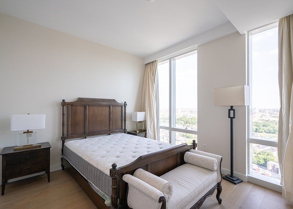 ONE GARAGE PARKING SPACE. Rere one bedroom with garage parking in Pierce Boston. It is surrounded by Fenway's rich history and culture, acres of green space & public parks, vibrant retails and critically acclaimed restaurants. This one-bedroom layout captures large living in an efficient space, with sprawling views of the northwestern skyline and the setting sun reflecting off the Charles River. Features include high ceilings, curtainwall of floor to ceiling glass, custom kitchen and bath cabinetry, Sub-Zero and Wolf appliances, wide-plank oak floors throughout, sliding bedroom door for privacy, and oversized walk-in closet. The perfect home for city living or pied-a-terre. Residents enjoy 20,000 SF of amenity space with exclusive access to the rooftop Levity Lounge including a brilliant sky deck, cocktail lounge, private dining, library, pool w/spa tub, and more. Services include doorman, 24-hour concierge.