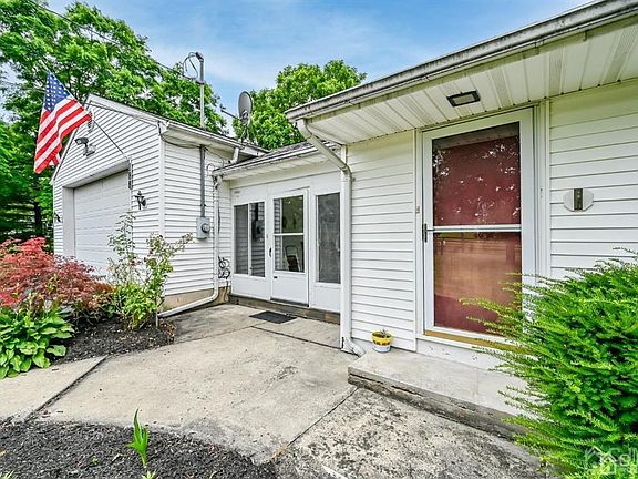 Charming Ranch home nestled on half an acre of private land. 2 Bedrooms, Full basement, Garage and plenty of space to build and expand! Step inside to an open and airy floor plan where hardwood floors expand throughout and shine like new. Bay window in the Living Room brings in a lot of natural light. Spacious EIK has great storage. Right off the kitchen is a large enclosed porch that is perfect to enjoy this Summer! 2 Bedrooms are a good size and the full bath rounds out the main level. Full basement has tons of potential! It's partially finished with endless possibilities and just waiting for your personal touch. Covered rear deck is perfect to enjoy in any weather and it looks over the oversized, tree lined backyard. Newly sealed driveway has plenty of parking. There is a storage shed, too. Roof is only 3 years old. Enjoy peace and serenity here and take in natures bounty! This is a great opportunity, come and see today!