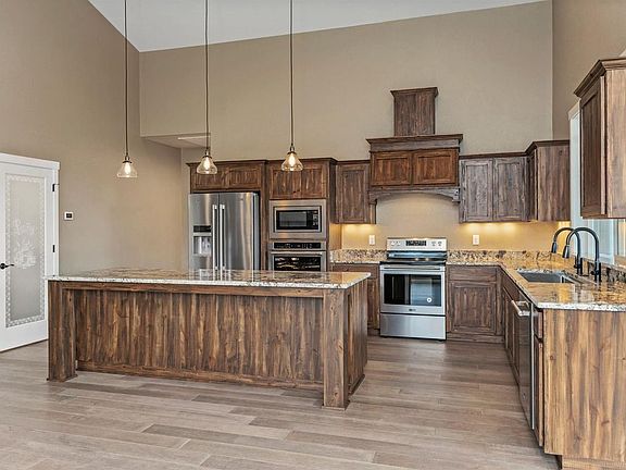 - Interior: Island, Alarm, Dry Bar, Ceiling Fan(s), Garage Door Opener
