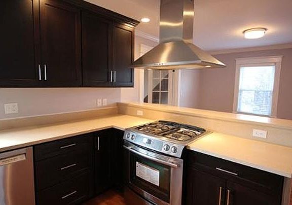 Beautiful newly renovated unit with 2 levels of living space. This very high end renovation features hardwood floors and Central Air throughout. Chefs kitchen features quartz countertops, Bosch appliances, and plenty of cabinet space. Large private deck perfect for table and chairs off the kitchen. The first floor features a large living room with a decorative fireplace, good size dining room space, 2 nice size bedrooms, a bonus room that would make a great office and shared full bathroom with marble tile. Your private master suite is located on the third floor with skylights, a sitting area, Huge walk in closest and a beautiful marble bathroom with double vanity. In unit laundry also located on third floor. 1 Garage spot and 1 off street spot included. Located directly across from a Cabot park. Close proximity to Newtonville Commuter rail, restaurants, Shaws supermarket, Whole foods, Dunkin Donuts, and mass pike. .05 Mile to Newtonville shops and COMMUTER RAIL to Boston