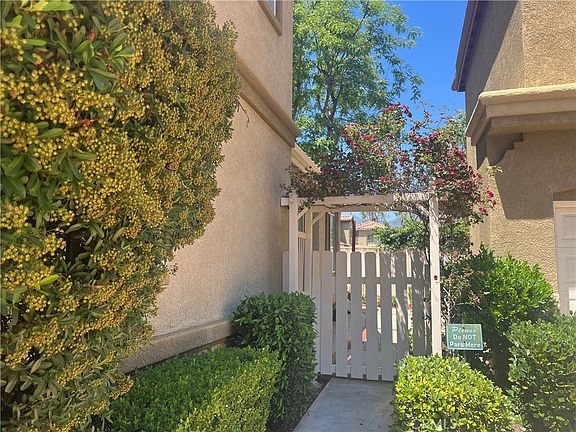 Charming 2 bedroom, 2.5 bath detached condo located in a cul-de-sac in the beautiful Los Abanicos neighborhood in the heart of Rancho Santa Margarita. Immediately you are welcomed into this home through a lovely gated, private courtyard patio, perfect for entertaining. The downstairs of this gorgeous home features an open floor plan with neutral travertine style flooring, crown molding and a ceiling fan and a welcoming fireplace in the living room. The bright and inviting kitchen features stainless steel appliances, granite counters and a sunny eating area. Also included downstairs is a powder room and direct access to the 2-car garage which includes shelving for storage. The upstairs features a spacious primary suite with a ceiling fan, double sinks in the bathroom, granite counters, shower and mirrored closet doors to the walk-in closet. The secondary bedroom includes a ceiling fan and large closet with organizer and mirrored doors. A second full bath with granite counters and decorator tile and a linen closet completes the upstairs. This lovely home includes fresh paint, brand new carpet and new A/C. The garage door and garage door opener have recently been replaced and the home has been completely repiped. The prime location of this home is close to schools, restaurants, shopping, RSM Central Park, RSM Beach Club, pools, parks and the 241 Toll Road. Don't miss this opportunity to own this charming home. Low HOA. Note: The property has been virtually staged.