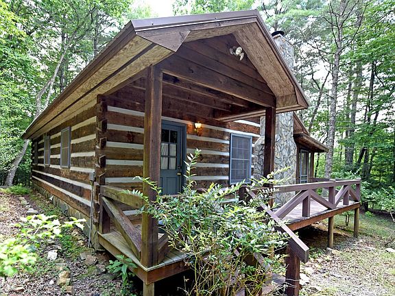 Adorable Mountain Chink Log Cabin in the Woods with Deeded Toccoa River Access! This is a fabulous little cabin with 2 Bedrooms and 1 Full Bath, one owner, Carport with workshop. Nice wooded lot with gentle property. Well maintained area. Home is sold "AS-IS"