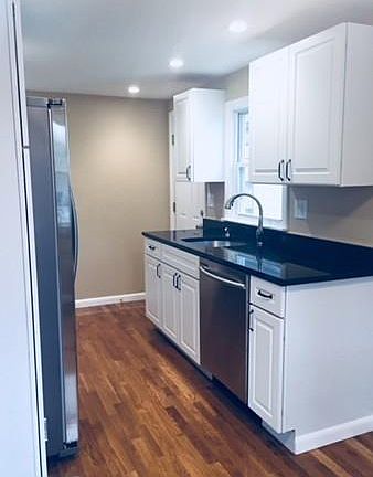 Beautiful renovated home in the city. Nice area on dead end neighborhood street. Renovations made through out home. Kitchen boasts high end cabinets,granite counters,gleaming stainless steel appliances,recessed lighting and hardwood through out. Sunlight fills this house through the new windows and front door. Renovated bathroom and new plumbing. Partial finished basement great for an entertainment room,den or playroom. Walk out to garage. Beautiful new granite steps and rod iron railings lead up to this renovated home. Minutes to downtown Boston and major highways.