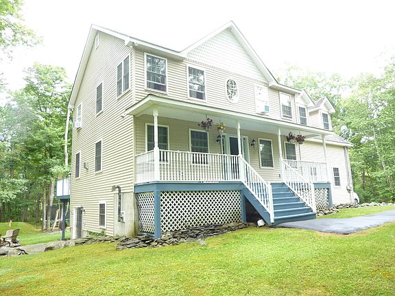 Move-in condition Colonial style home located in Conashaugh Lakes offers 4 Bedrooms (including a master bedroom suite), 2.50 baths, open modern kitchen w/center island, spacious dining room, wood floors, living room, laundry, covered front porch, 2 car attached garage, full basement (unfinished), with double door entry, pellet stove, open rear deck, paved driveway, oil HWB heat, private well & septic, private back yard borders greenbelt for lots of privacy, access to beach, club house, pool, tennis courts, paved roads, security, more... Settlement anytime after August 22nd, 2020.